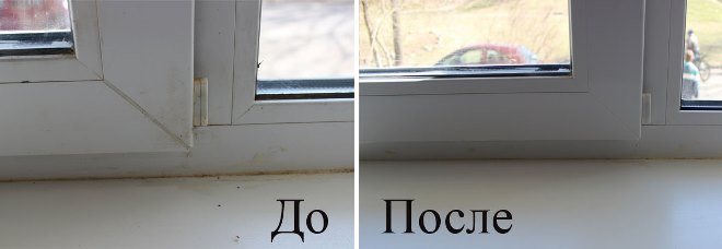 В отличие от стекла, пластик под воздействием внешней среды (в основном солнечных лучей) приобретает со временем жёлтый оттенок. Отбелить раму и подоконники из ПВХ помогают:
