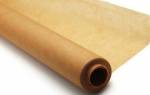 - Прочная плотная бумага для выпечки коричневого цвета используется для запекания блюд из любого вида теста. Хорошо впитывает жир, но если выпечка нежирная, то пергамент предварительно смазывается маслом.