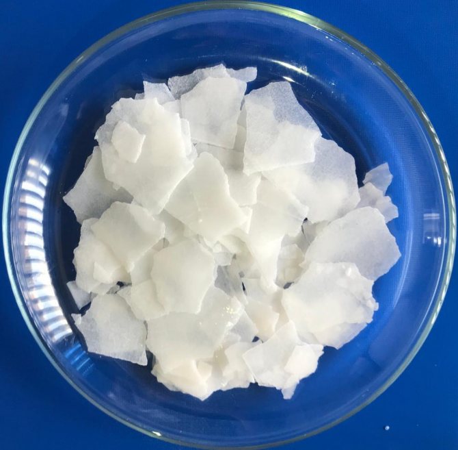 - Мелкие белые хлопья, которые прекрасно растворяются в воде.