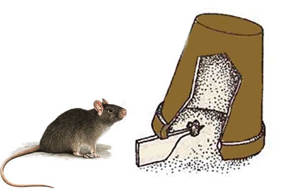 Существует хороший вариант ловушки для крыс — ведро с соляным раствором