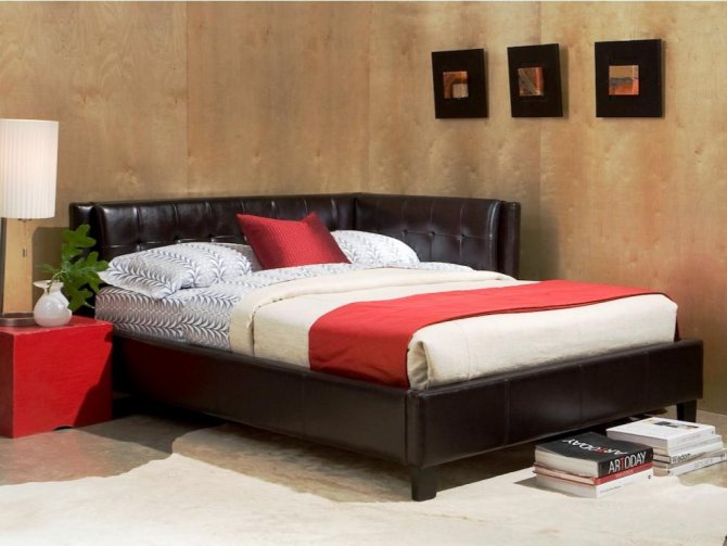 Мебель с угловым изголовьем отличается от традиционных вариантов формой спинки и отсутствием изножья. Из-за особенностей конструкции предмет помогает использовать в помещении «мертвые» зоны. Под местом для сна обустраивают системы хранения.
