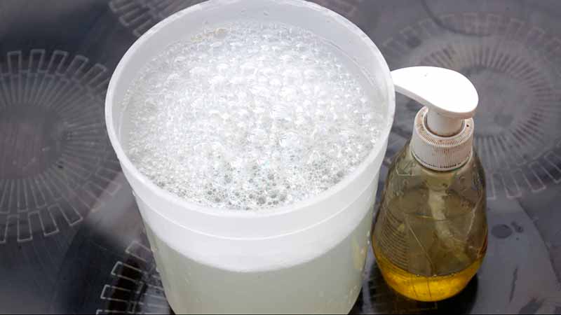 - Приготовьте раствор из воды и моющего средства в пропорции 10 к 1.