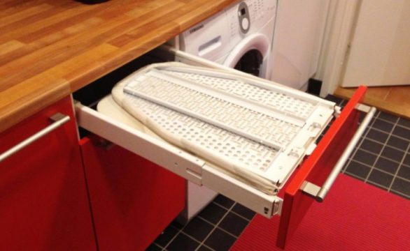 Каждый из вышеуказанных вариантов удобен для малогабаритных квартир, где нет большого количества места для бытовых мелочей. При помощи полок и ящиков, есть возможность не только спрятать гладилку, но и сделать её удобной в использовании, оснастив механизмом поворота в любую сторону. При отсутствии опоры снизу, гораздо удобнее гладить свитера и другие вещи, которые нет возможности расстегнуть. Настенные и встроенные конструкции имеют множество преимуществ и лишь один недостаток, который заключается в высокой стоимости изделия.