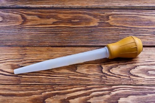 При запекании мяса, рыбы, овощей и птицы очень помогает вот такая большая пипетка. Если нужно поливать, например, целую курицу выделяющимся соком или маринадом, то намного удобней делать это не ложкой, а именно пипеткой. С ее помощью легко попасть даже в отдаленные уголки духовки. Можно поливать готовящееся блюдо соусом, маринадом, бульоном, подходит она также и для гриля. Обычно такие пипетки делают из термостойкого силикона и прочного пластика.