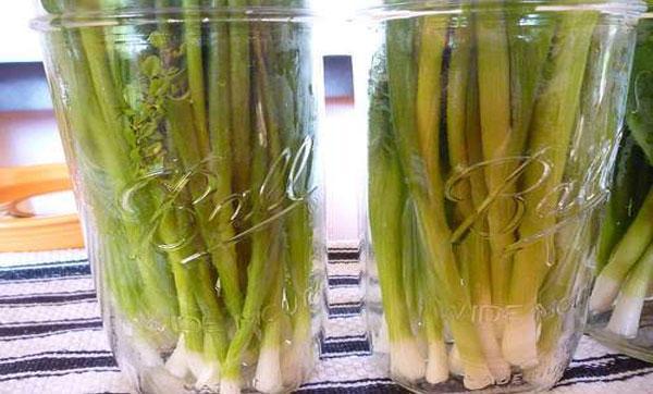Лук нужно аккуратно перебрать, выбрав лишь небольшие перышки, поместите их в чистую сухую банку, не загибая. Предварительно его хорошо просушивают. Такой способ позволяет добавлять в блюда свежий продукт еще достаточно долго — 1-2 месяца.